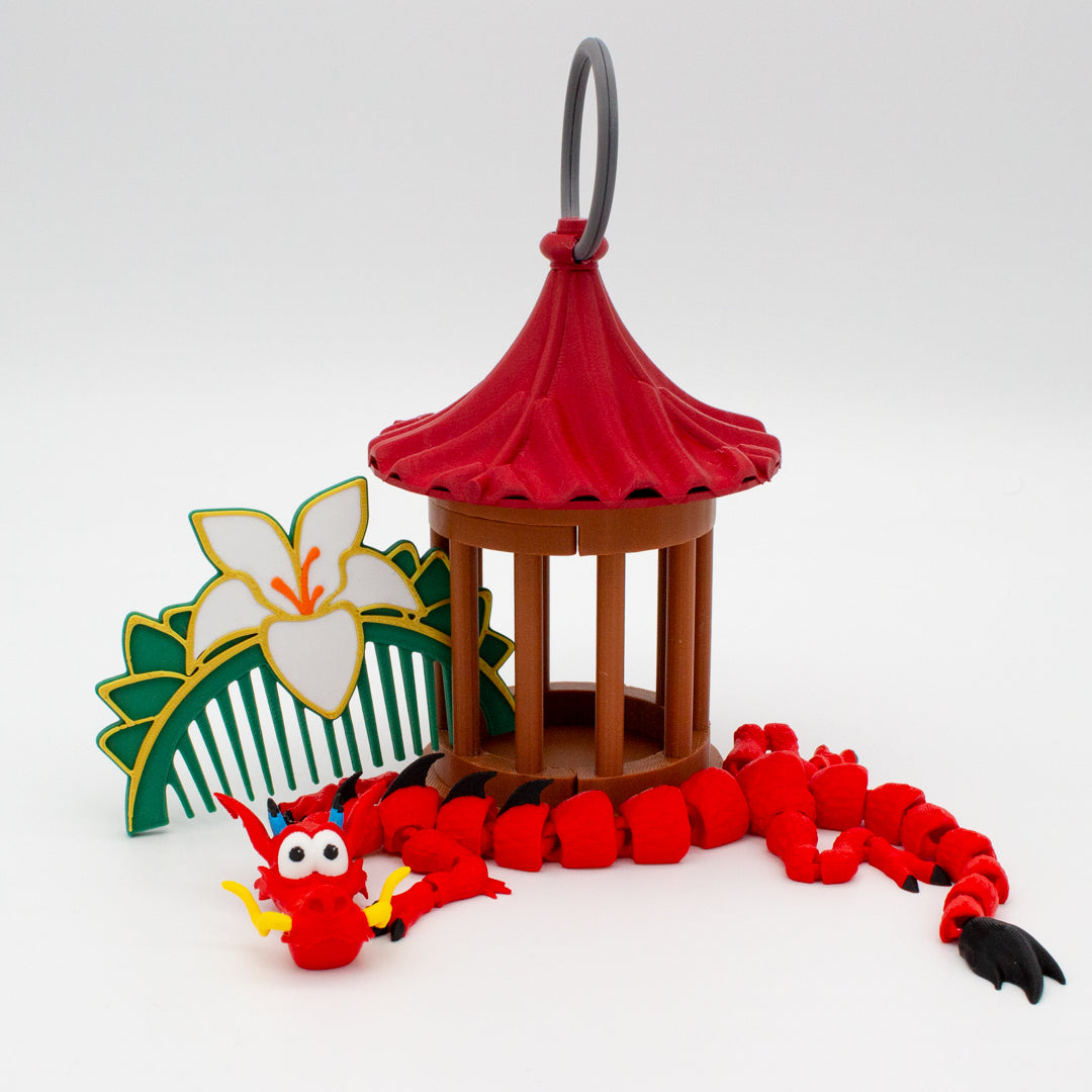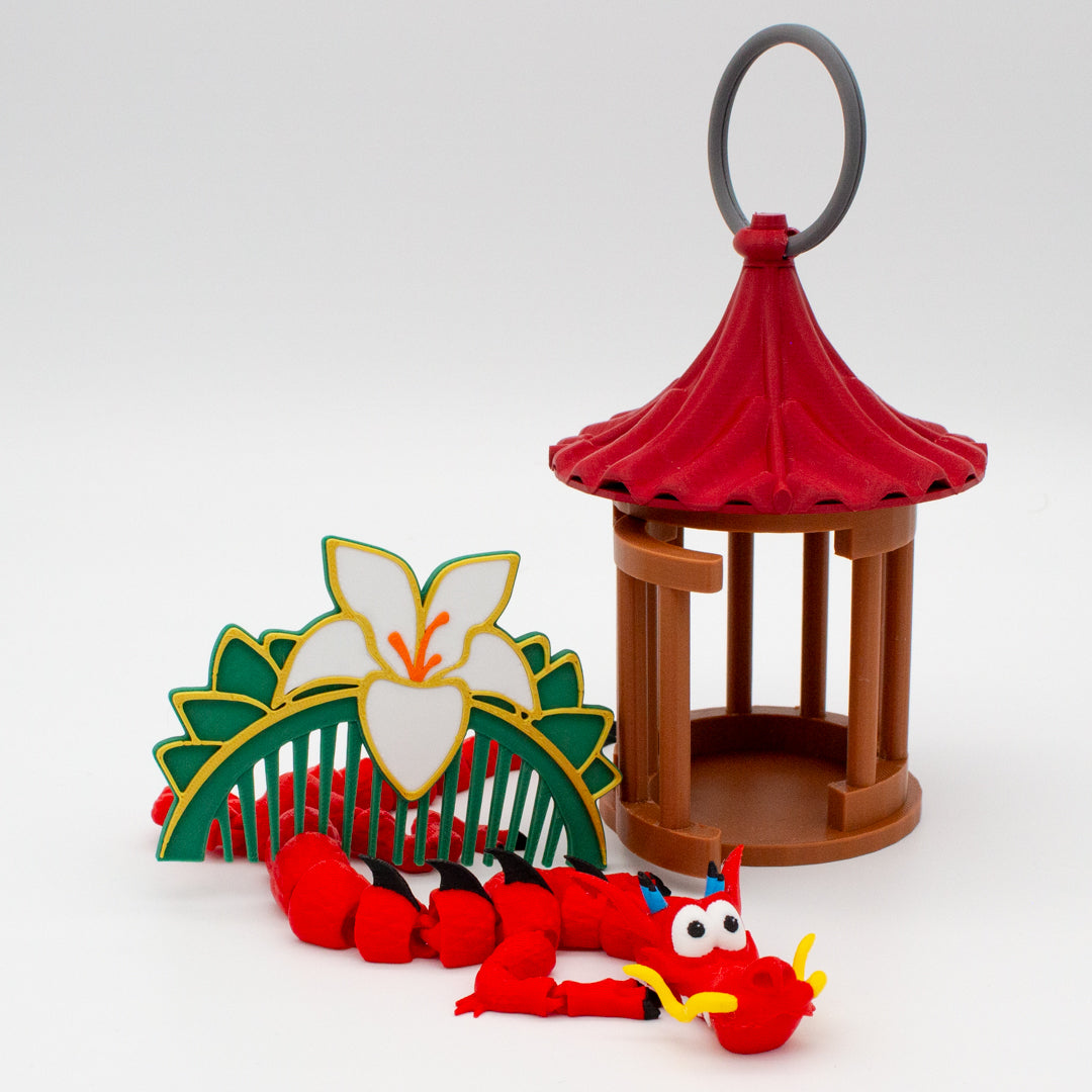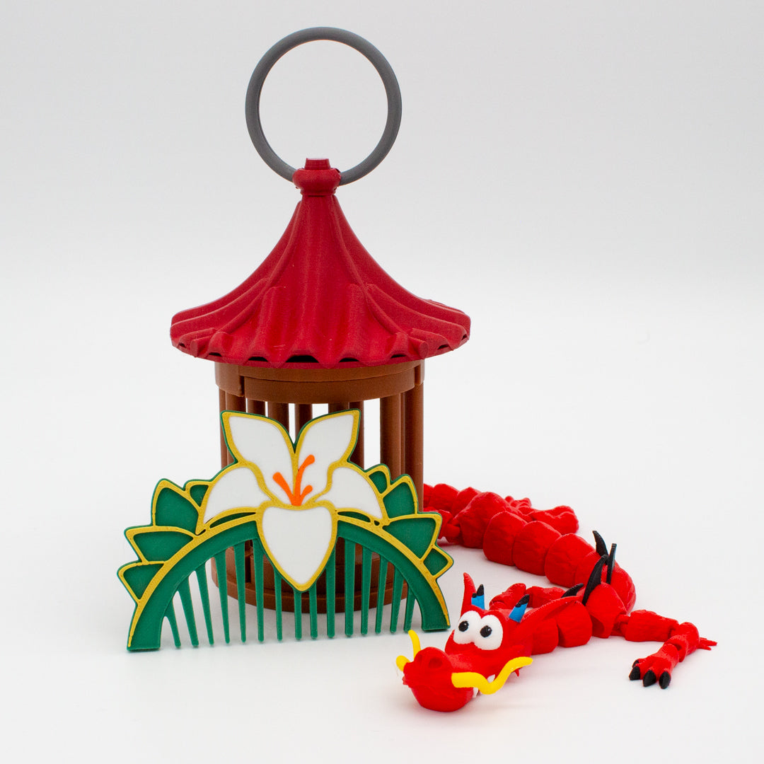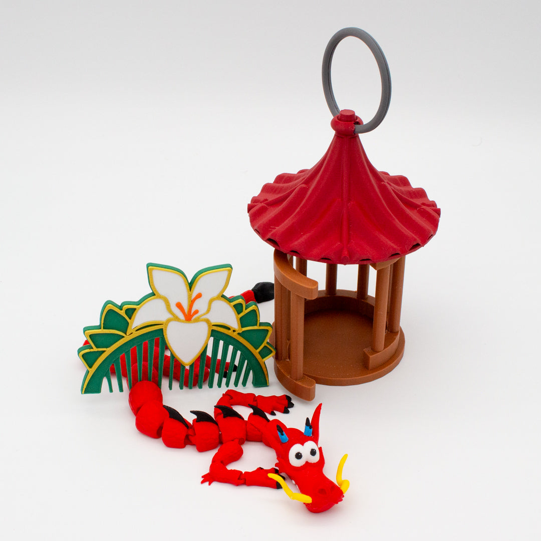 ¡Revive la magia de Mulán con este pack exclusivo! 🐉✨ Incluye la figura articulada de Mushu, llena de detalles y movilidad; la jaula del grillo de la suerte (¡sin grillo, porque se escapó!); y el icónico peine inspirado en la valentía de la guerrera. Un conjunto perfecto para decorar, coleccionar y celebrar la esencia de esta historia llena de coraje y humor. ¡Porque Mulán no es solo una leyenda, es una inspiración! 🎭🌸 #MulanVibes