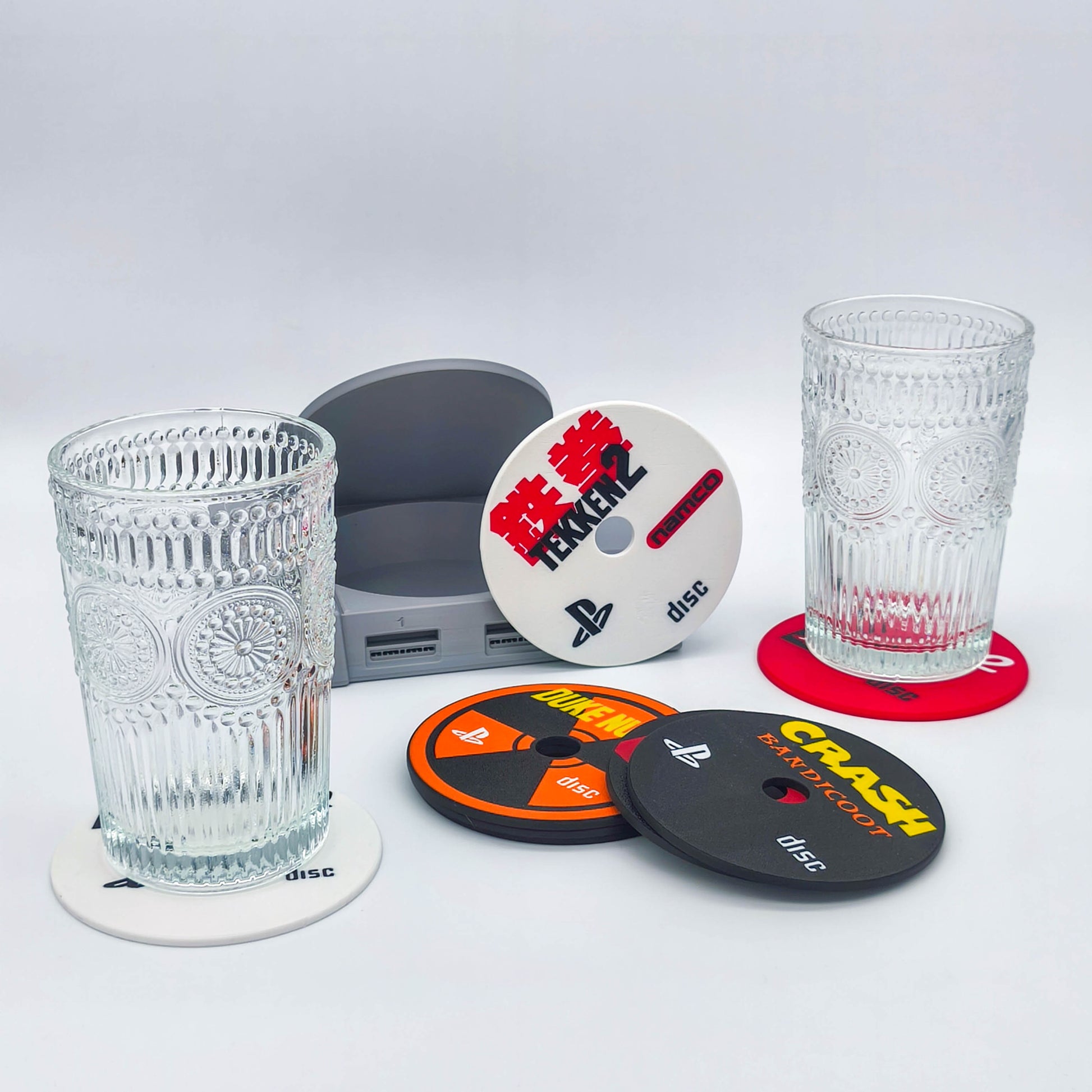¡Atención, gamers de la vieja escuela! ¿Listos para un viaje directo a los 90? Te presentamos la pieza de colección definitiva para tu salón: un pack completo que incluye una réplica de la mítica PSX y ocho posavasos con forma de discos de juego.
