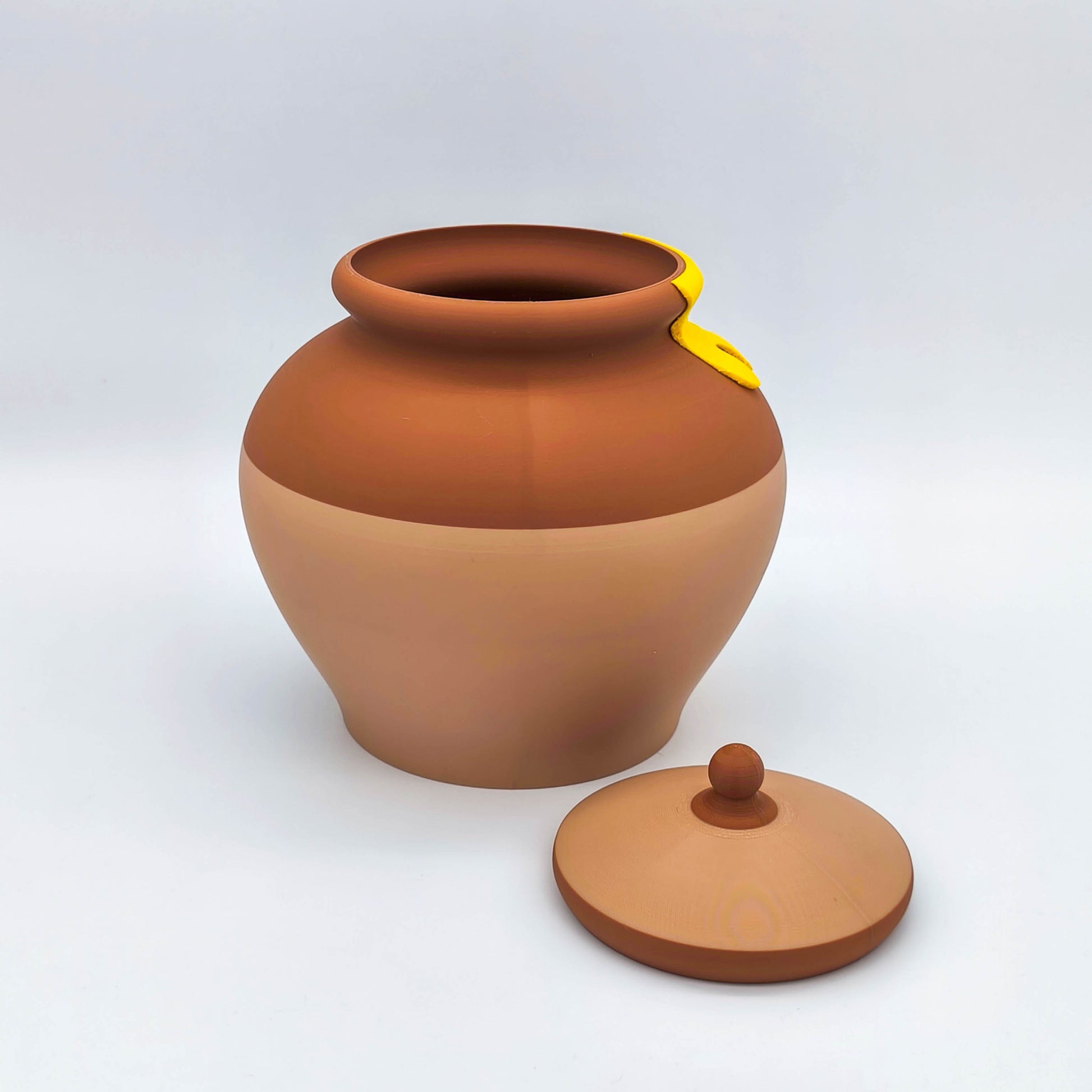¿Cansado de buscar tus galletas o tus tesoros por todo el Bosque de los Cien Acres? ¡No busques más! Te presentamos la réplica más adorable del tarro de miel de Winnie the Pooh. Con su característica miel derramándose por el borde, esta pieza es perfecta para guardar tus dulces, monedas o cualquier pequeño tesoro que un oso goloso como Pooh atesoraría.